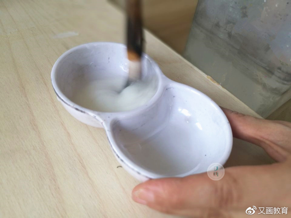 3. 调浆糊水(浆糊太稠,不能直接刷上去,因此就要在盘子里加水调和,调成像米汤一样的状态就可以用啦,调的量根据画心的大小决定哦)