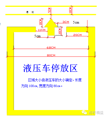 F 类----移动式设备的定位(如液压车):使用黄线四周定位线,并标明起动方向;