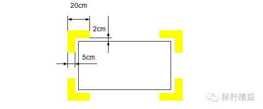 D 类----物料码放架与形状规则的常用物品的定位:使用黄色四角定位线;