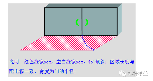 E 类----消防栓、配电柜等禁放物品的开门区域处的定位:使用红白相间