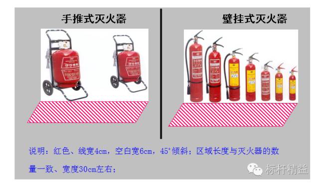 C 类-----消防器材、油类、化学药品等危险物品的定位:使用红白警示定位线;