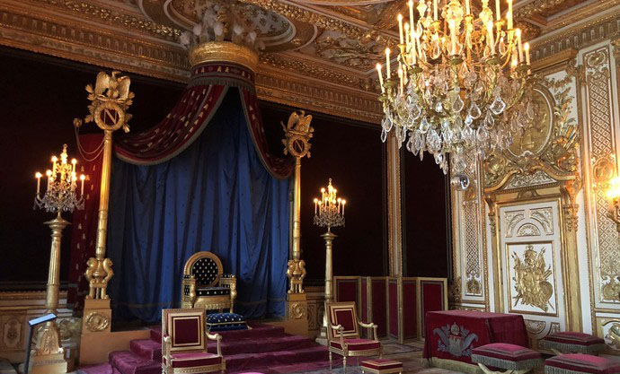 对于游客来说,凡尔赛宫似乎代表了法国的宫殿,所以大部分游客都去了凡尔赛宫,所以就让枫丹白露略显寂寞,而枫丹白露所在的小镇,更是宁静的不像话。进入建筑,首先会上到二层,你会看到一条长廊,长廊两侧挂满了历代帝王,王后的画像,随后看到的就是拿破仑博物馆,这里有10多个房间用来陈列拿破仑相关的物品。