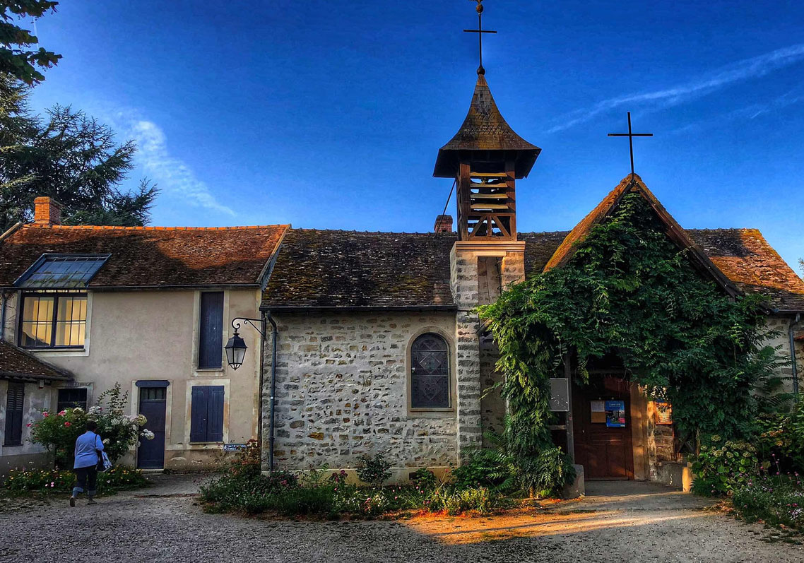 在逛米勒故居的时候就会发现有知识牌引到你去米勒庄园,米勒庄园就是米勒绘画《拾穗》和《晚钟》的地方,现在这里依然保持着19世纪米勒绘画《晚钟》的时候的原貌,在路边有一个牌子,上面就印着米勒的画。