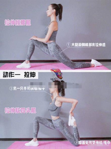 动作讲解拉伸,后腿小腿抬起,用双手抱住,双腿交替做,持续30秒