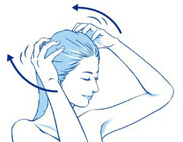 3:用两手的手掌轻轻按摩头部两侧,让精华液能够充分渗透入头皮。