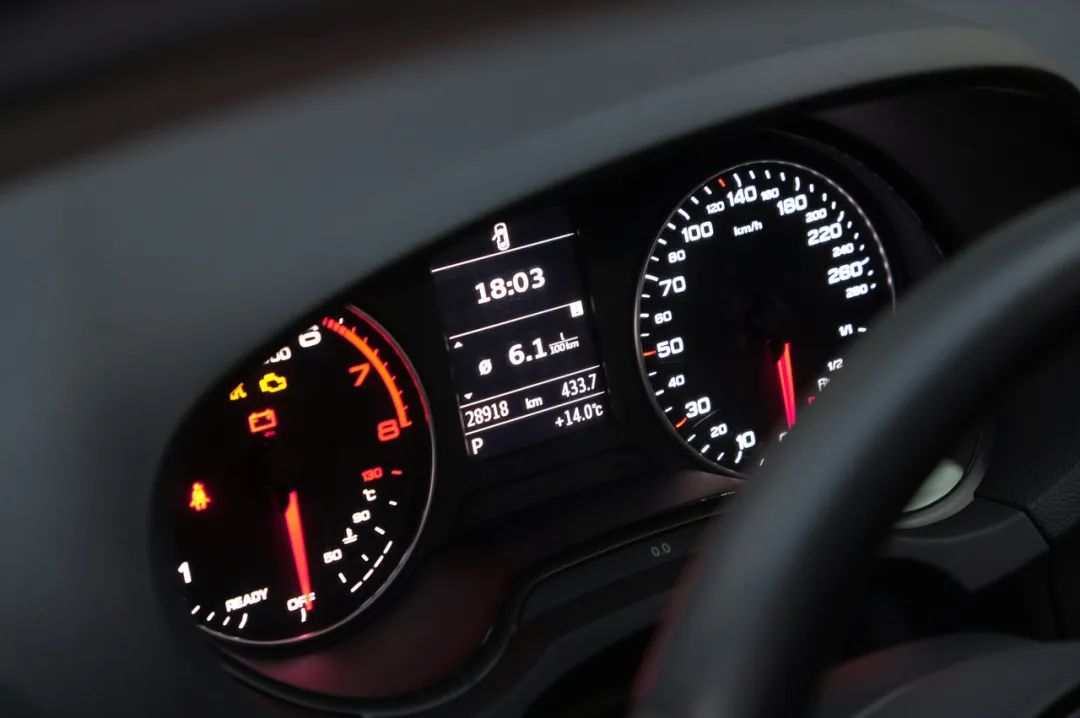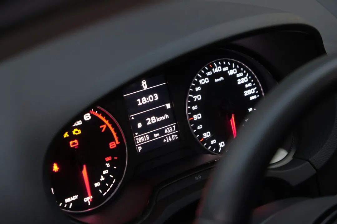 有时候居然没有背光?折腾了一会,我终于搞清楚奥迪仪表盘背光的机理了。车子贴了深色玻璃膜,从主驾驶左边射进来的光线被削弱,仪表盘就觉得外部环境不够亮,就决定不需要把刻度点亮。