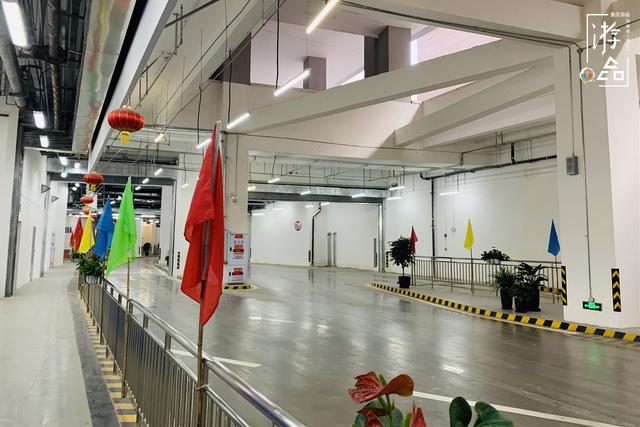 公交枢纽站内也立起了彩旗,挂上了灯笼,为单调的行车空间里增添了一抹彩色。
