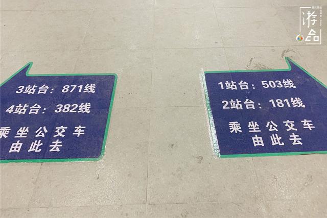 进门就能看到地上的两个箭头,分别指向左右两个方向,共有4个公交车站台,左边为3、4站台,右边为1、2站台。