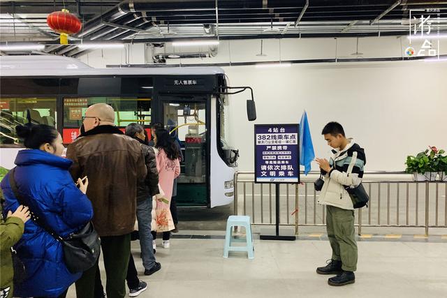 在4站台,382线路的上车点,市民们正在排队等待上车。