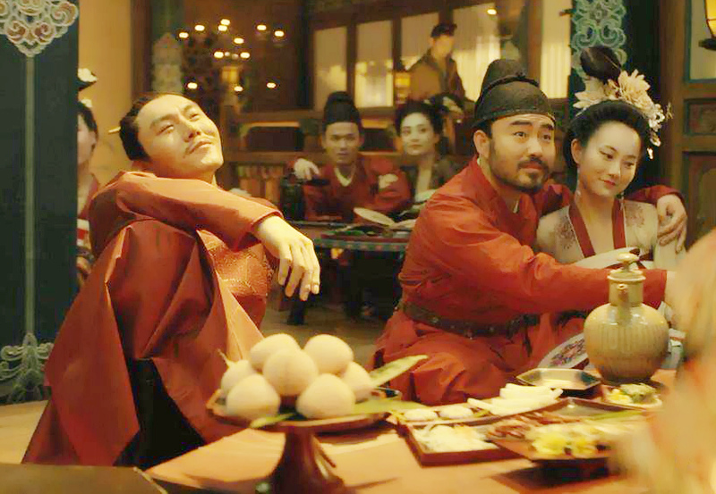 走出澡堂子继续探寻,听得楼上喧哗吆三喝四行令,左边正店之内坛坛佳酿飘来酒香,难道这澡堂子还有酒食餐饮?抬头望去四盏红彤彤的灯笼一晃一晃,这澡堂挂着灯笼够新鲜的,那澡堂为何要挂着灯笼呢?若是有宋史专家在旁,他会告诉你:挂着灯笼的“香汤店”和正店并非只是澡堂,这是青楼!