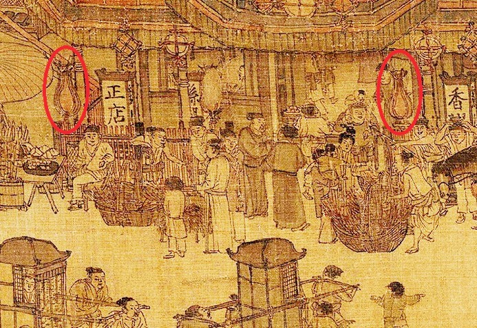 除开像正店这种排面豪华的大酒家之外,其他小型的酒肆客栈也可能同时存在青楼经营,虽然没有打出“青楼”字样但却有“栀子灯”这一招牌,在《清明》画卷中还可以在其他较小的街铺中找到挂着“灯笼”的场所,只要是悬有栀子灯的则是“兼营”有青楼的去处。可见传世名画《清明》中确有青楼,而古代青楼的实际情况也并非想象中的不堪入目。