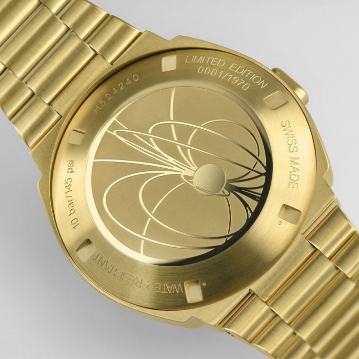 全新腕表分为两种款式:不锈钢款(型号H52414130)和不锈钢镀玫瑰金款(型号H52424130)。表壳尺寸均为40.8x34.7毫米,配备经过防眩处理的蓝宝石水晶镜面,搭载数字石英机芯,采用LCD & OLED混合显示,同时提供10巴(100米防水性能)。两款腕表各自搭配与表壳材质相同的表链,不锈钢镀玫瑰金款限量发行1970枚,以此致敬首款数字腕表的发布年份。