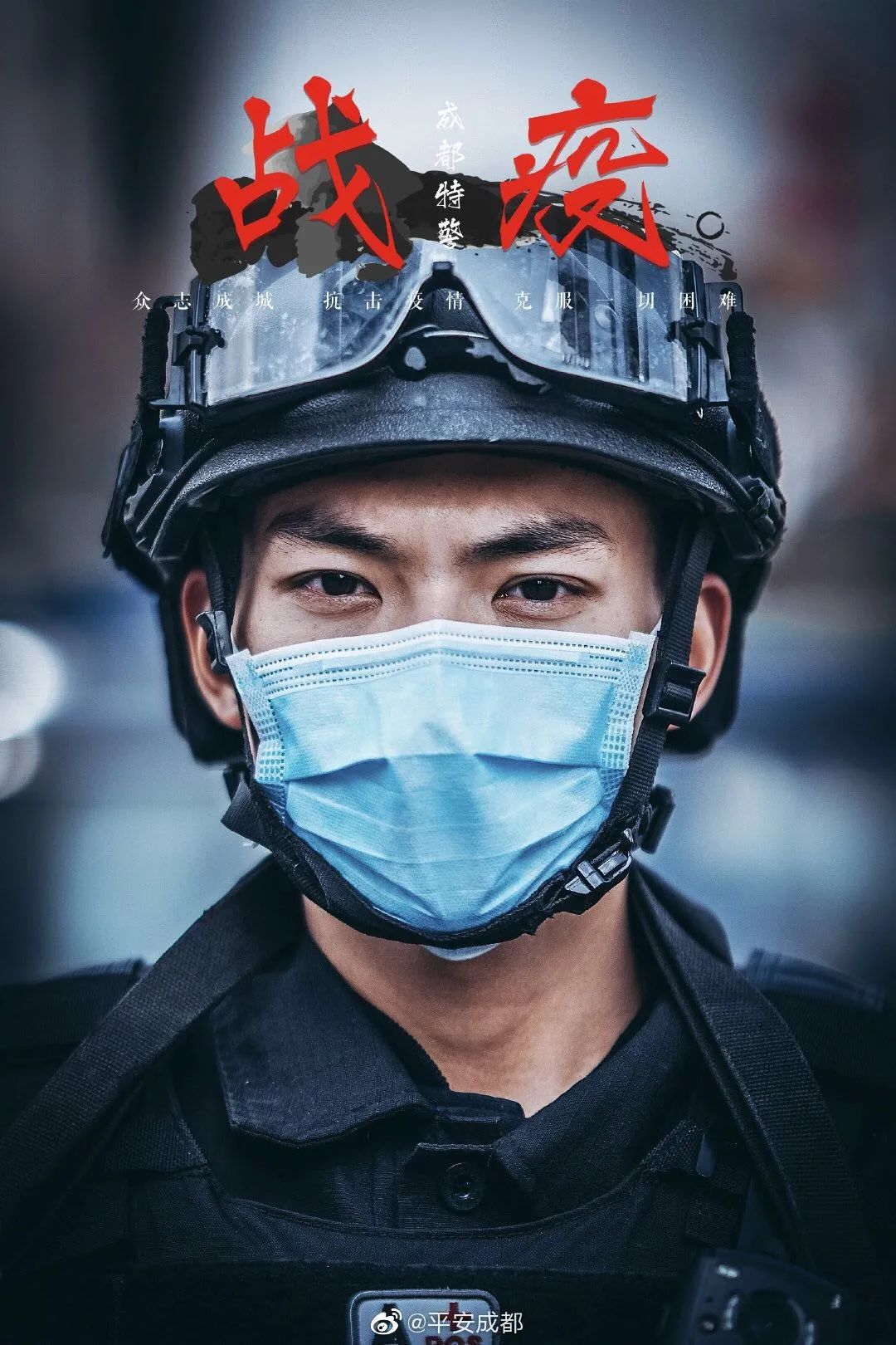而守护成都太古里的 特警小哥文潇伟,不仅坚守岗位,还被做成了宣传海报哈哈哈!