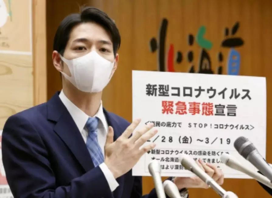 还有最近特别火的 日本北海道的知事铃木直道 ,更是凭借一只小小的口罩,分分钟将政府记者会,开成了明星发布会。