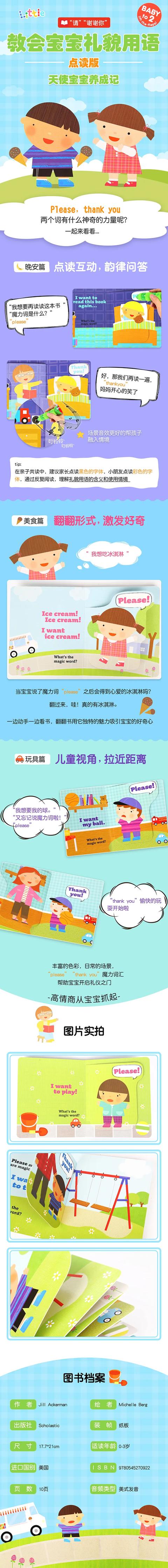 培养天使宝宝教育需从娃娃抓起,礼貌不是天生的,而是后天养成的,每个宝爸宝妈都希望自己能有一个天使宝宝,这就需要我们谆谆善导,Please and Thank You 启蒙礼貌用语便是再适合不过的。