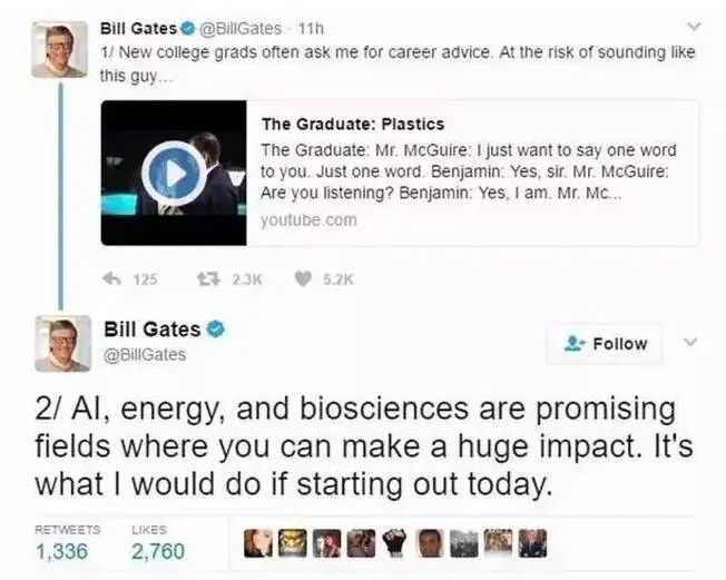 相比前两位在社交媒体上的推文,盖茨大叔的推文更多的倾向于向年轻人灌注鸡汤,分享他自己所阅读过的书籍,以及他所做的慈善活动。