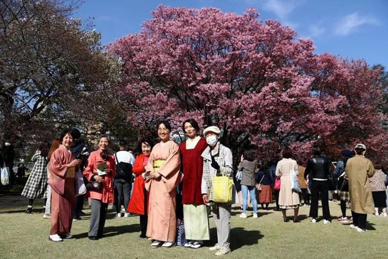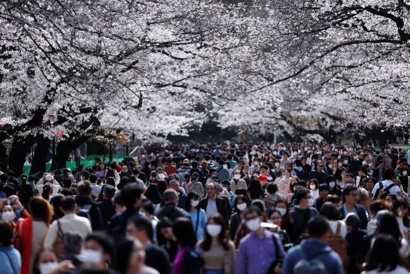 3月22日,在日本东京上野公园,也有很多不戴口罩的人
