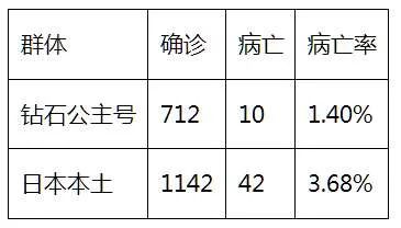 但是,跟日本本土的数据一比,就比出问题了:日本本土的病亡率达到了3.68%,几乎接近了医疗救治不及时、医疗资源紧张条件下的病亡率。