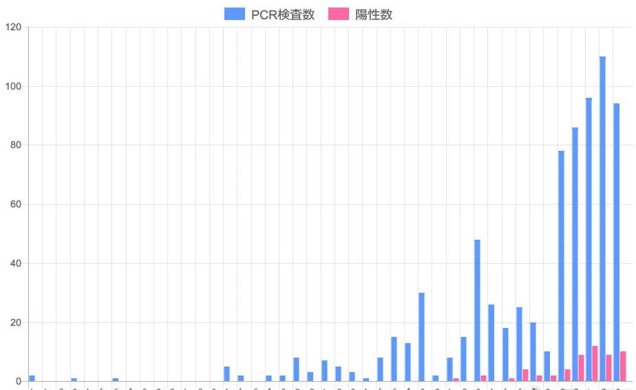 日本疫情新增趋势图,日检出病例在增长