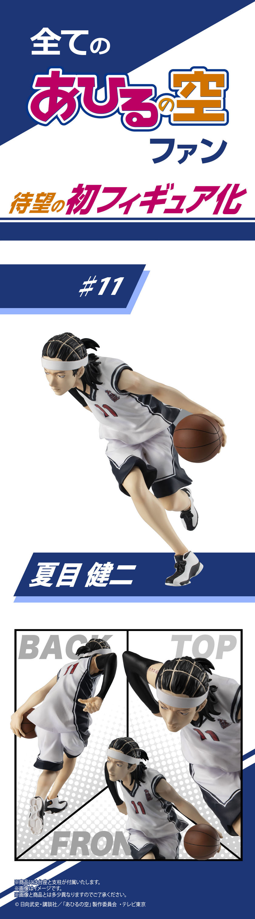 近两年的小众篮球番《鸭子的天空》凭借不错的品质吸引了不少动漫迷的关注,近期万代也计划为其推出模型制作。选择了剧中的人物夏目健二呈现,以其突破的造型设计。外观上可以看出非常明显地模仿了艾佛森的穿戴,但上脚了一款AJ13,略显违和。喜欢的朋友可以关注一下,该模型将于9月发售。