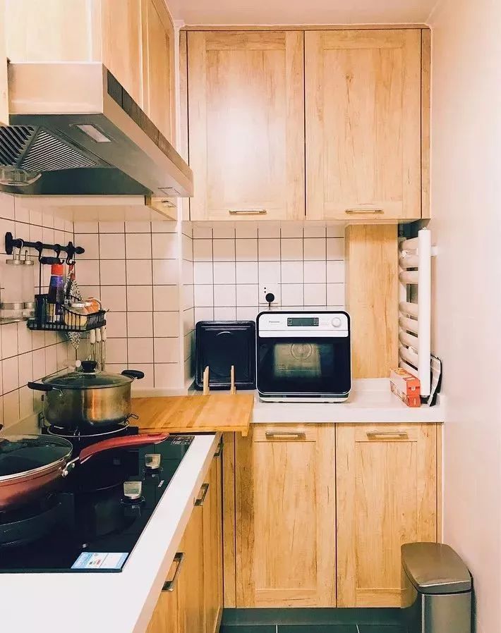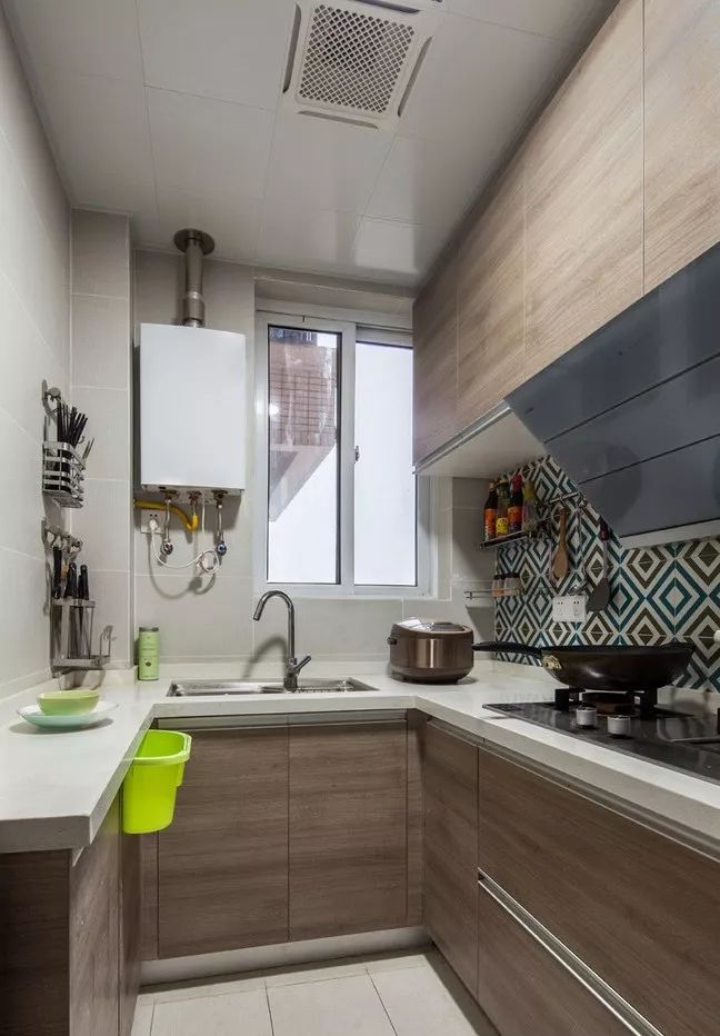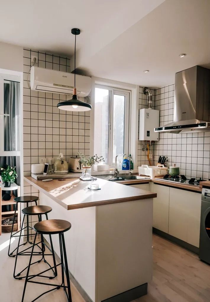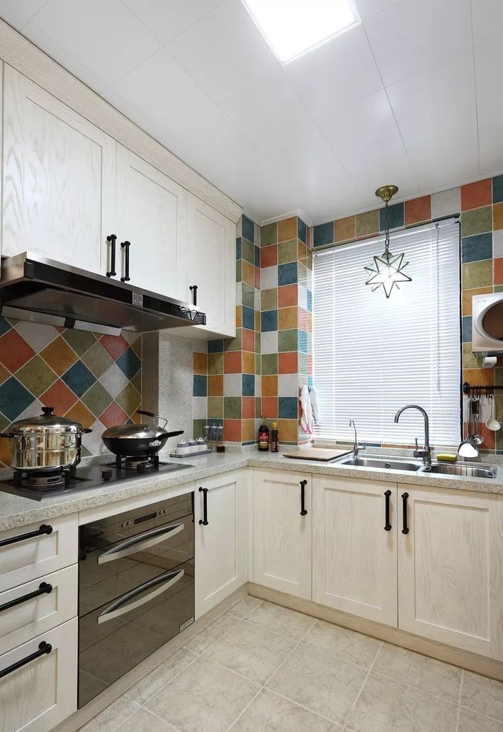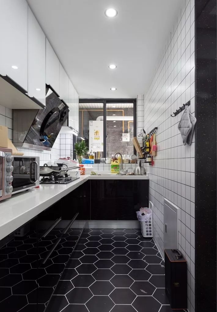 厨房的墙面一般比较单调,实用性远远胜过了装饰性,因而没有太大的亮点。如果用花砖进行装饰,和其他单色砖形成一个视觉上的对比,或许就能轻松打造视觉焦点了。