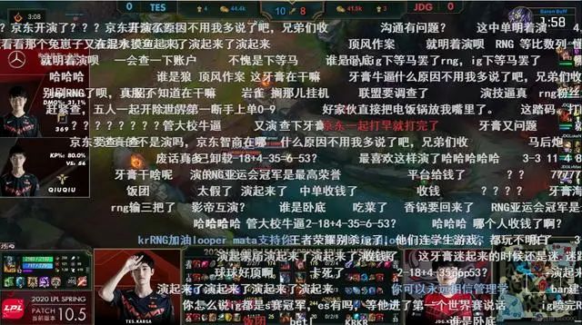 JDG方面观众怀疑的是中单yagao,在对战TES的比赛中,yaogao有好几次都操作失误,比如JDG打大龙时被TES包夹,JDG其他人孤注一掷开团,yagao脱离主战场在边缘OB导致队伍被TES团灭,每当这个时候,弹幕都在调侃人生如戏全靠演技。