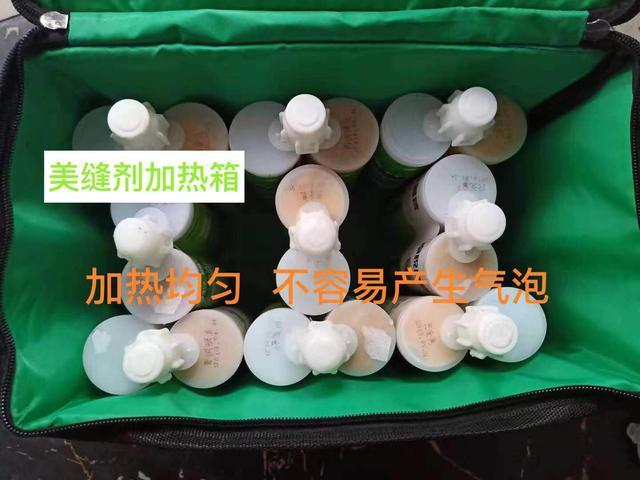 2. 恒温箱加热:恒温箱比较方便,温度可以自己设定,然后将美缝剂放进箱子中静置就能加热,一次可以加热好几组美缝剂,完全不耽误施工,也不需要时刻盯着,受热比较均匀,打出来的胶体不会有气泡,或者浸泡过头的情况。