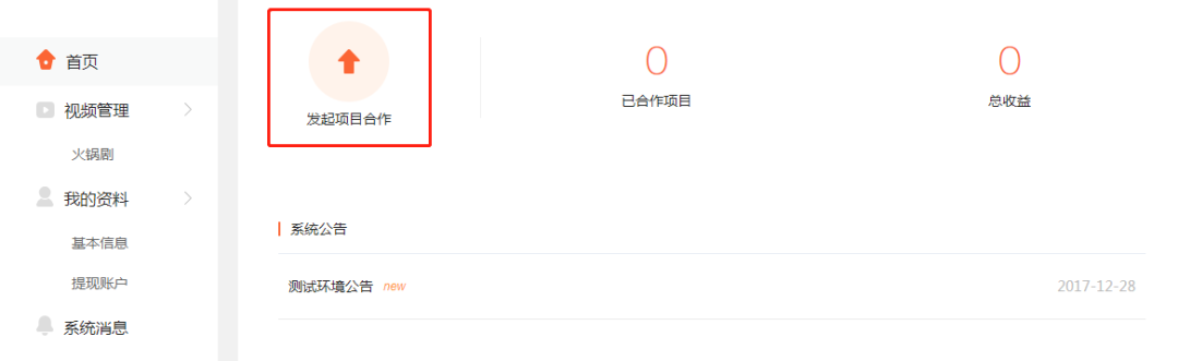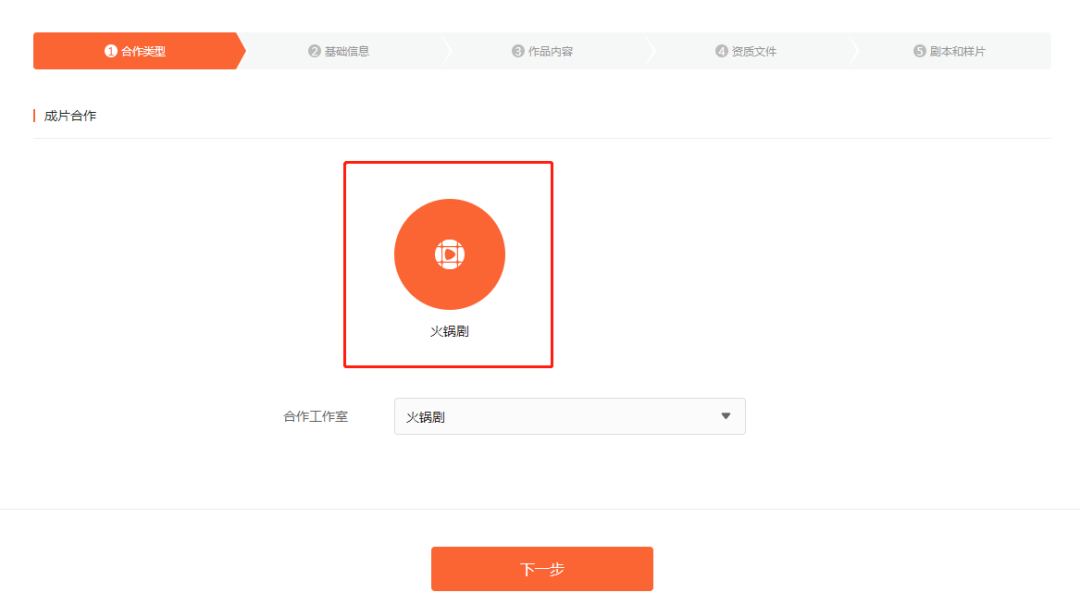 机构资质审核通过以后,即可在星途发起项目合作,后台点击“发起项目合作”并选择“火锅剧”。