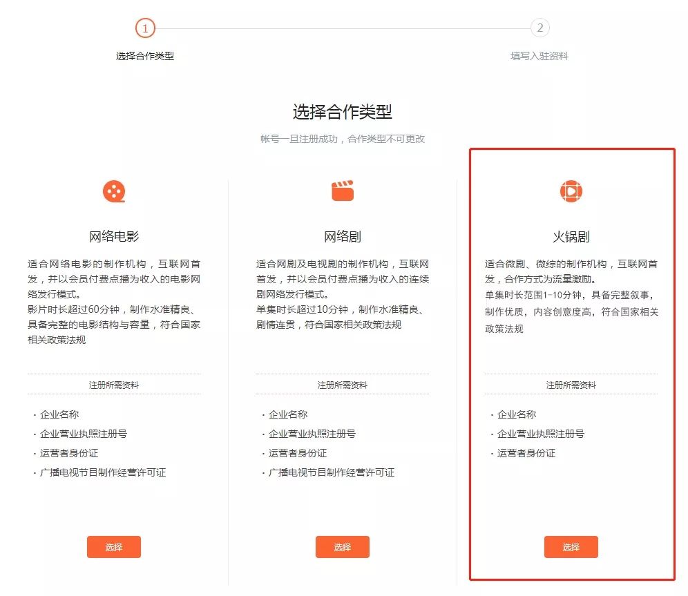 合作申请后,评估后达到投资标准的项目,优酷给予投资(买断或者联合投资+分账),并协助合作方完成制作。