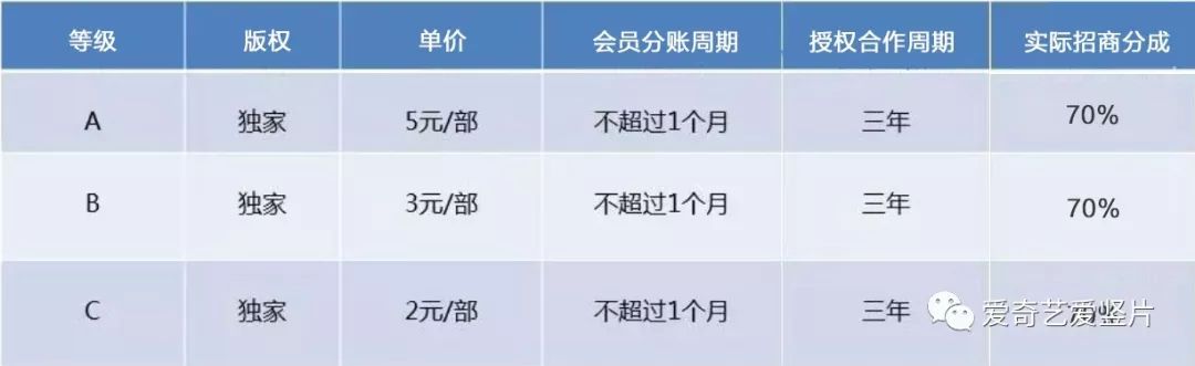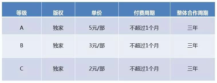 ③ 单部(或单季)作品授权vip付费期限1个月,独家授权期限不少于3年;