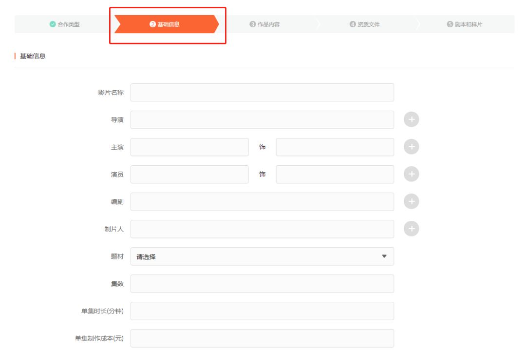 基础信息:项目名称、导演、主演、演员、编剧、制片人、题材、集数、单集时长(分钟)、单集制作成本、制作完成时间、一句话亮点、是否IP改编、项目联系人、联系电话、电子邮箱、QQ号、微信号;