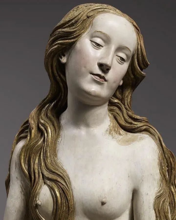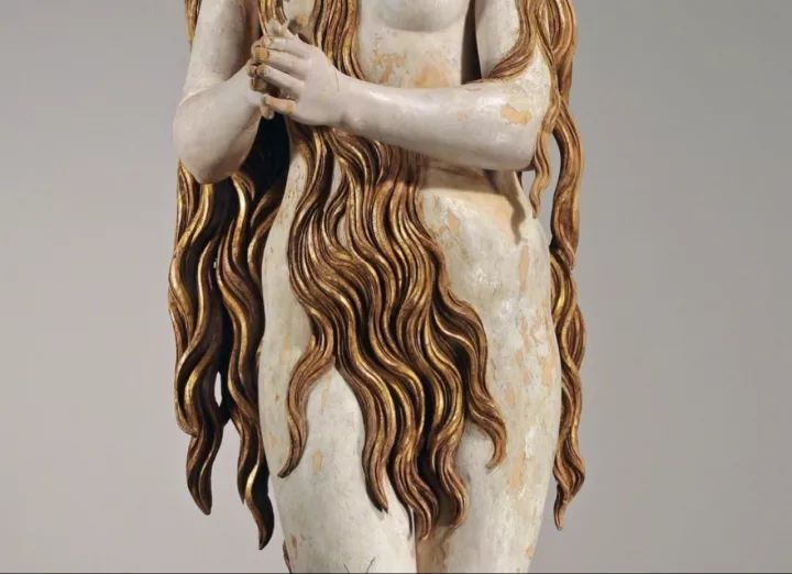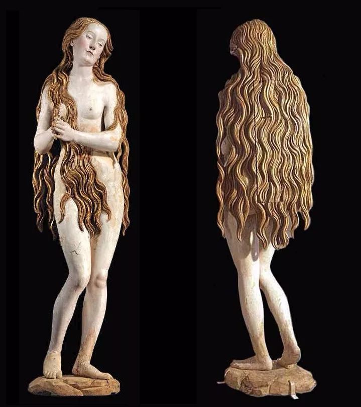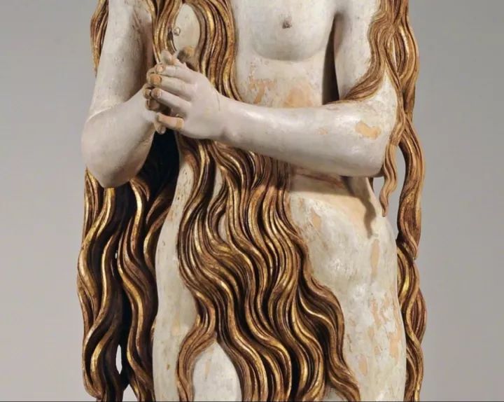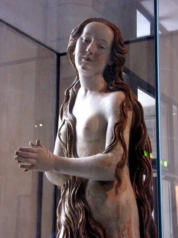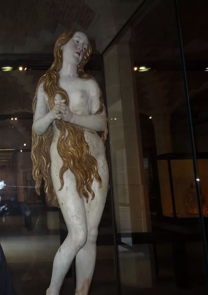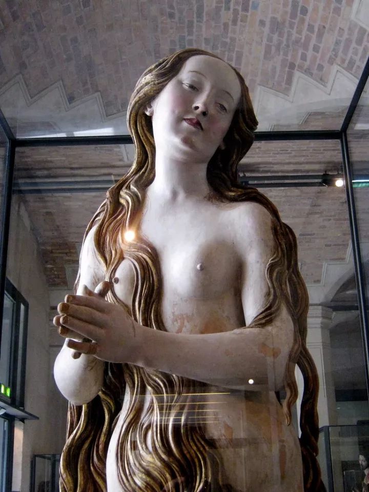 这一不寻常的裸体形象代表了圣Mary Magdalene作为一个神秘的禁欲主义者。据传说,悔改的罪人在Sainte-Baume山洞里过着隐居的生活。每一天,她都被天使们举起来,聆听天国的合唱。这尊塑像于19世纪在德国艺术市场上出现,并于1902年被卢浮宫购得。