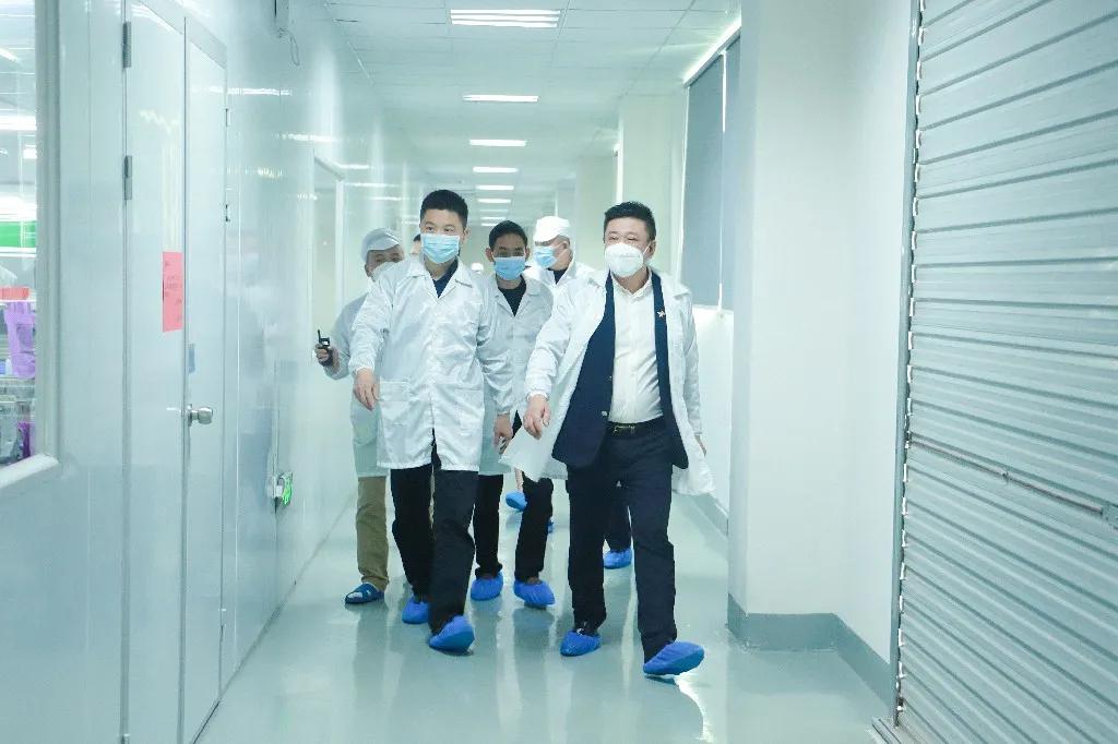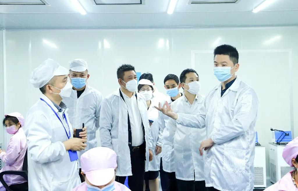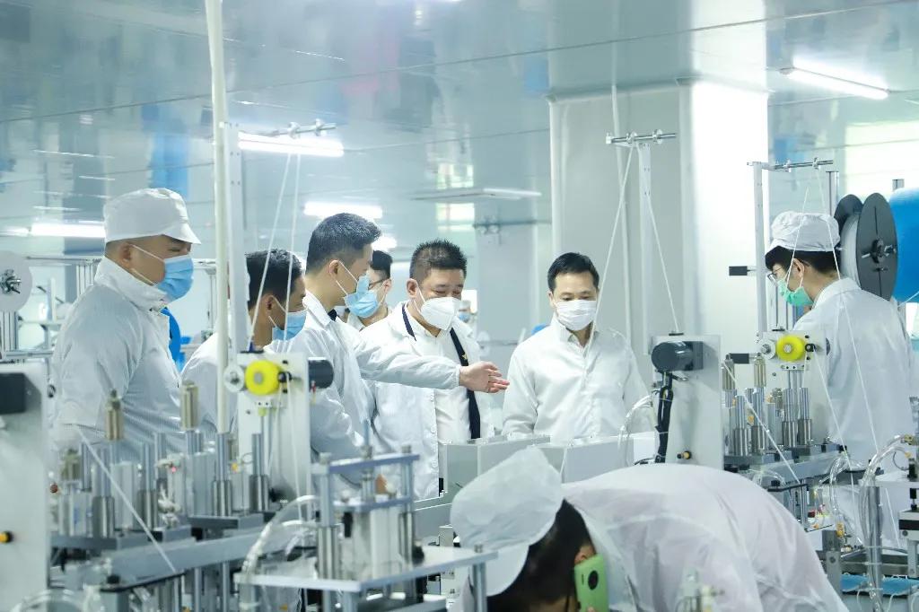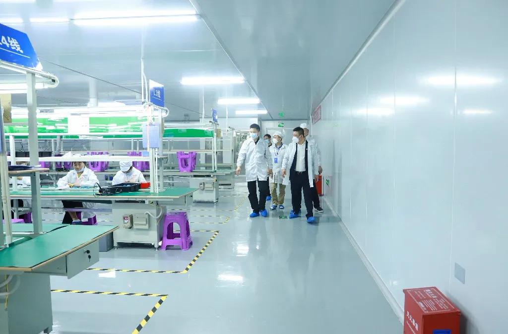 3月24日上午,深圳市宝安区工业和信息化局副局长杨辉一行对深圳京科实业有限公司(以下简称:京科实业)口罩、额温枪生产车间进行实地考察,详细了解生产线设计、设备采购、生产能力等情况。京科实业董事长、广州白云山维一实业股份有限公司总裁陈朝晖等公司领导陪同考察。