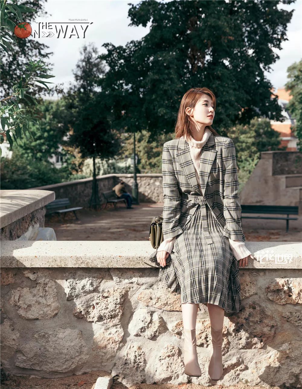 经典格纹遇见巴黎,更能赋予这一经典元素女性优雅而别致的复古趣味,特别是置身在这微绿微黄的初秋,洋溢着独特的法式浪漫风情。