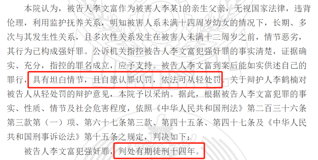 最终法院认为,被告人李某富犯强奸罪事实清楚,证据确实充分,指控的罪名成立。到案后能如实供述自己的罪行,具有坦白情节,且自愿认罪认罚,依法可从轻处罚。判决被告人李某富犯强奸罪, 判处有期徒刑14年。