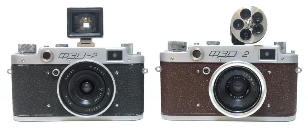 07. 装有2只常用广角镜头和取景器的 Fed 2 相机。左侧相机上安装的是 Russar MR-2 20mm F5.6镜头和专用取景器。右侧相机上安装的是 Orion-15 28mm F6 广角镜头和多焦距的万能取景器。
