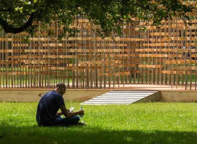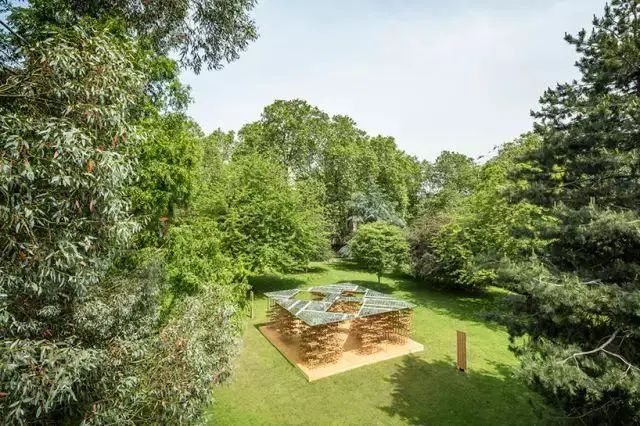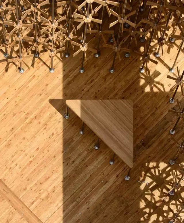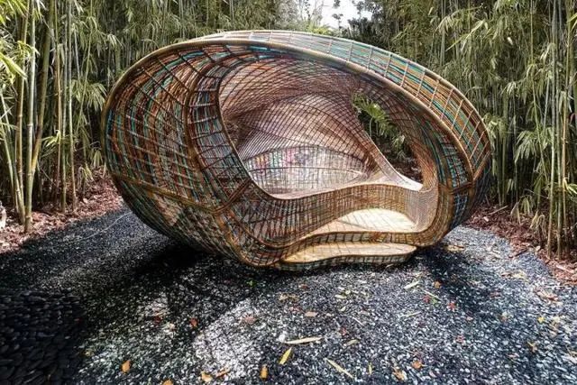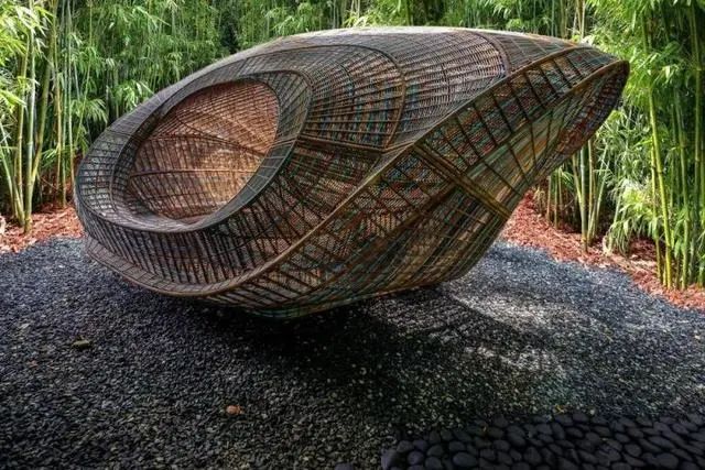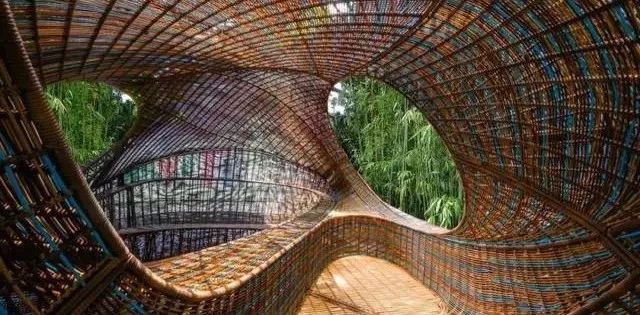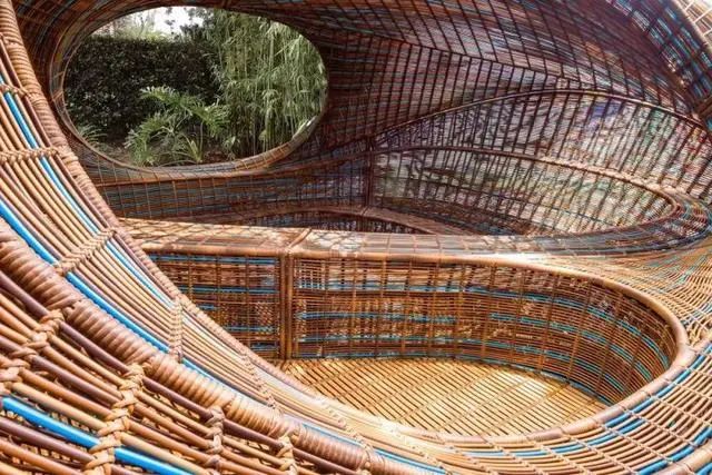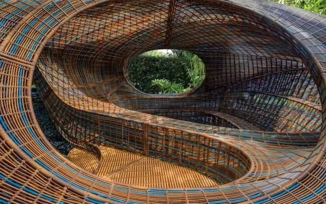 ▲这个结构是由竹子、不锈钢杆件、木材和抛光的铝建造的