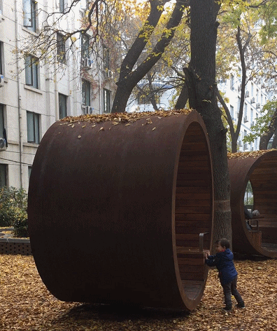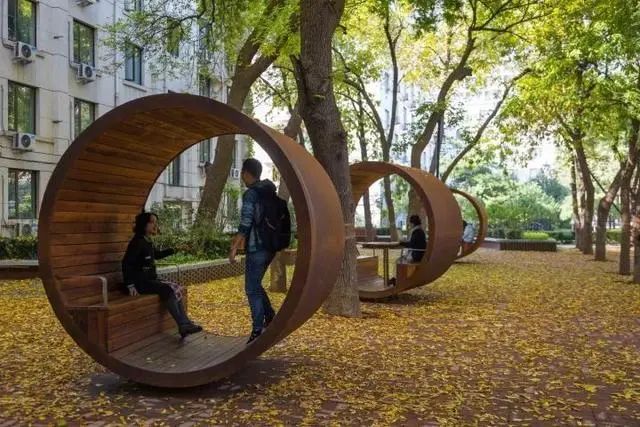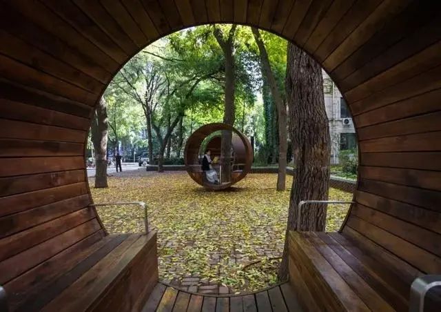 树洞转亭内的坐凳并不相同,分别是单排坐凳,双排坐凳,双排带桌子三种形式,这暗示了人与人之间的不同交流模式。