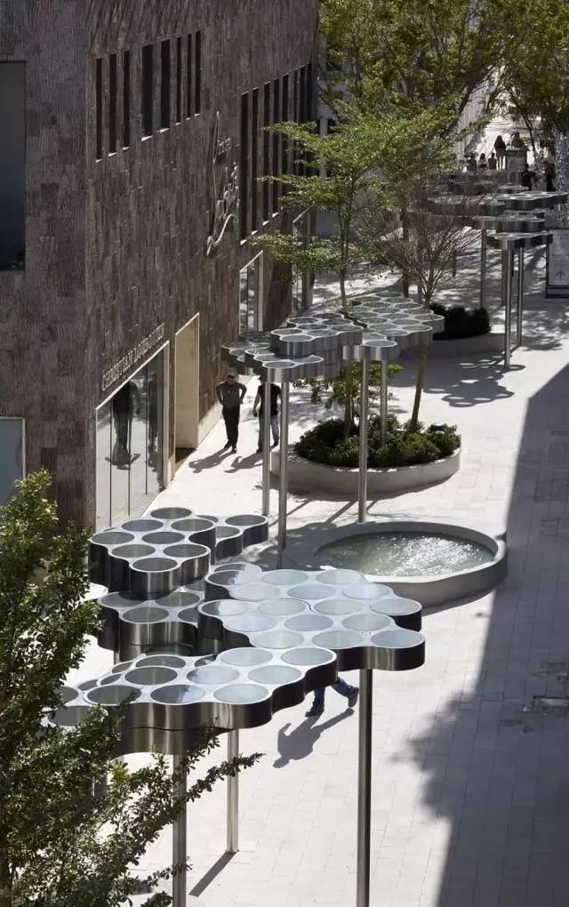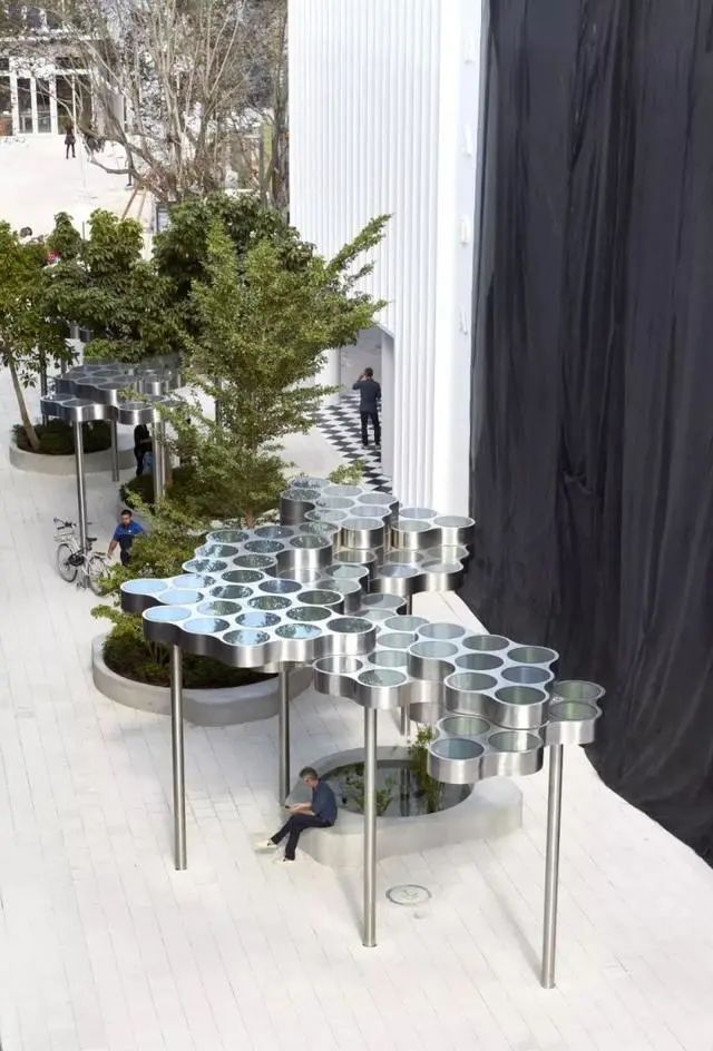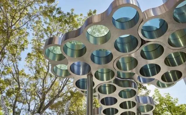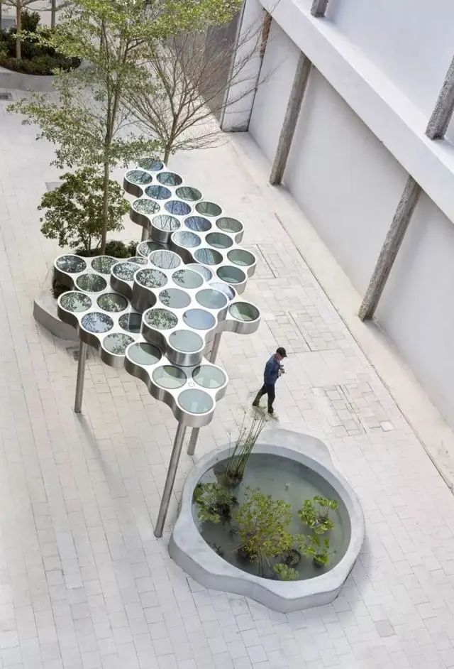 “城市树休息室”体现了材料和建筑以新颖和创造性方式相结合时的神奇。为游客也提供了一个场所,坐下来放松一下,在这里让你的思想进行充电,充满活力,以及让生活更美好的愿景。就像一个有机的树,吸收,过滤和镜像阳光,创造一个反射和充电的阴影,可以影响公共空间设计的创意方法。