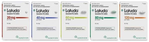 Latuda的活性药物成分为lurasidone(鲁拉西酮),这是一种非典型抗精神病药物,由住友制药发现和开发。与其他现有的抗精神分裂症药物相比,鲁拉西酮具有独特的化学结构,对多巴胺D2、5-羟色胺(5-HT2A)、5-羟色胺(5-HT7)受体均具有亲和力,在这些受体中具有拮抗作用。此外,鲁拉西酮对5-羟色胺(5-HT1A)受体具有部分激动作用,对组胺H1或毒蕈碱M1受体无明显的亲和力。