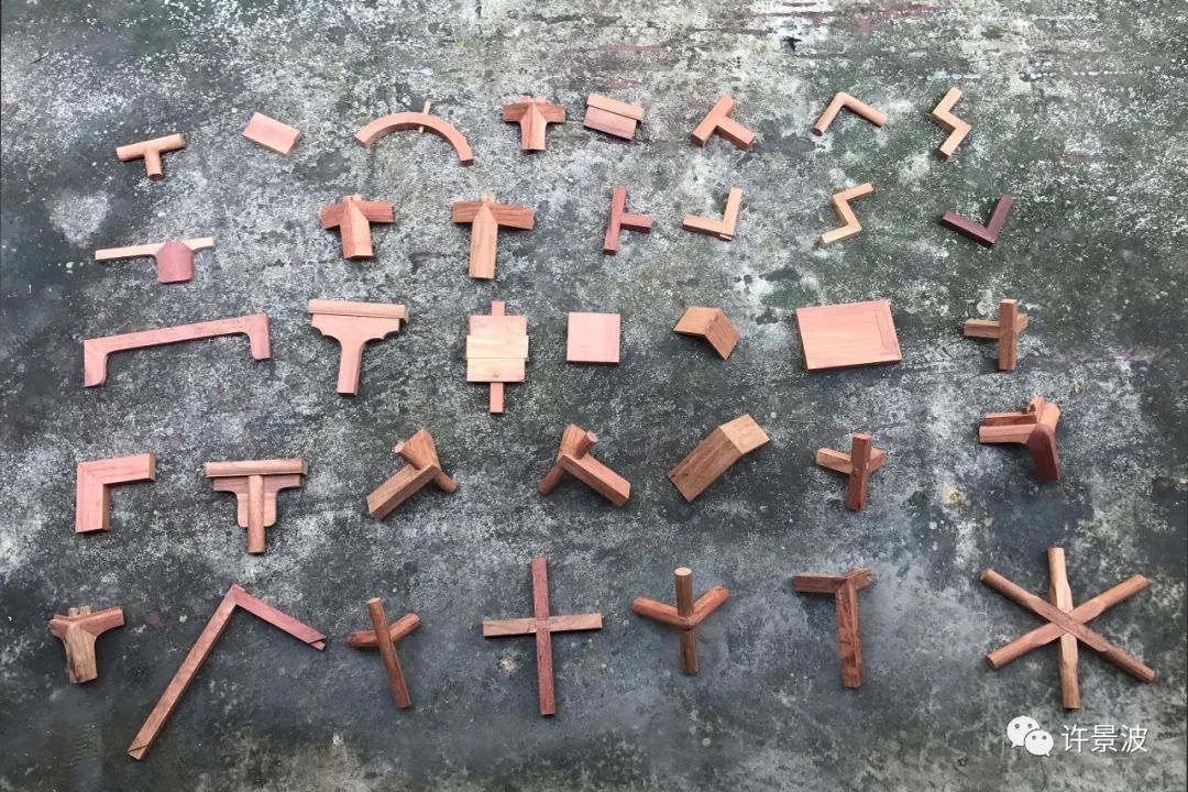 榫头的肩是弧形的,肩的弧度大小和相交圆材的接触面弧度一致。
