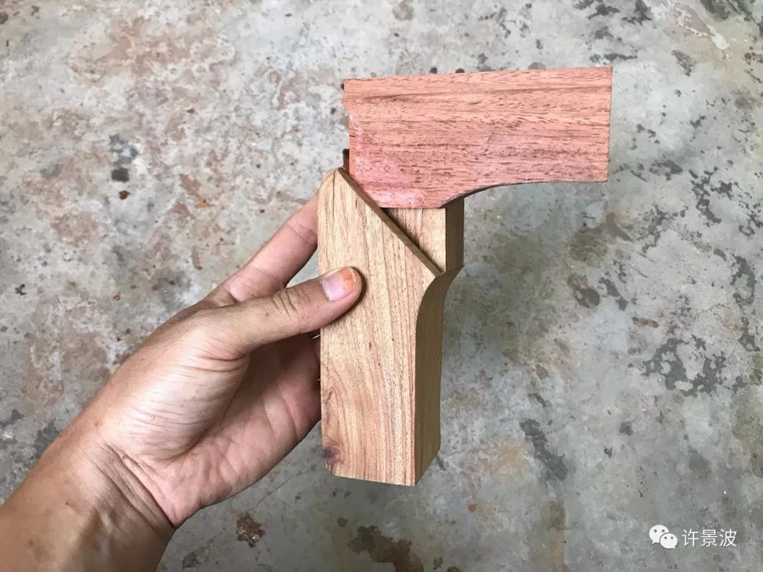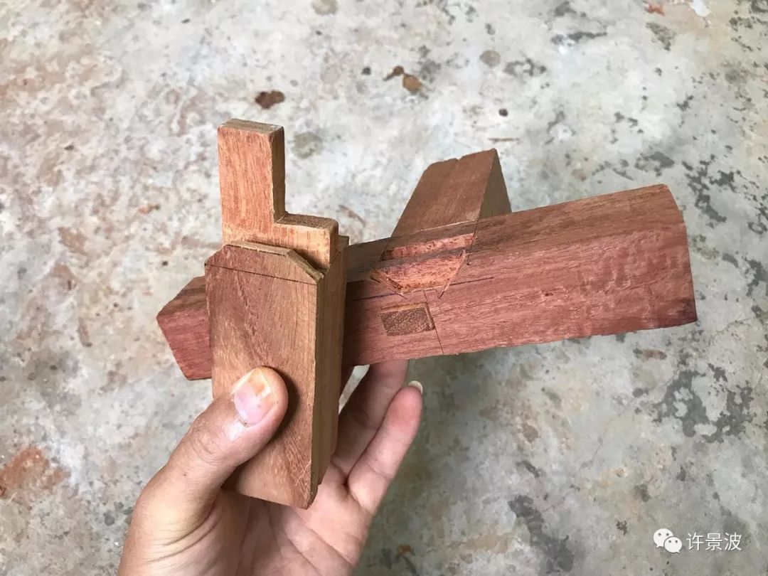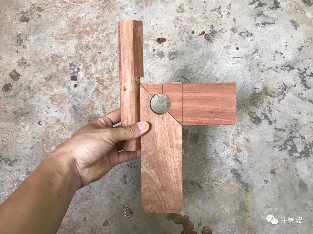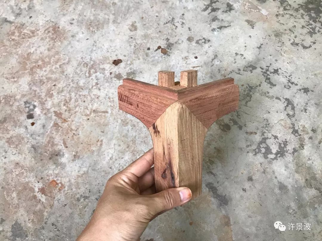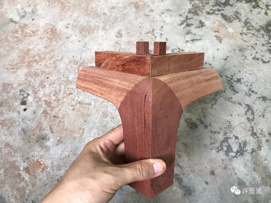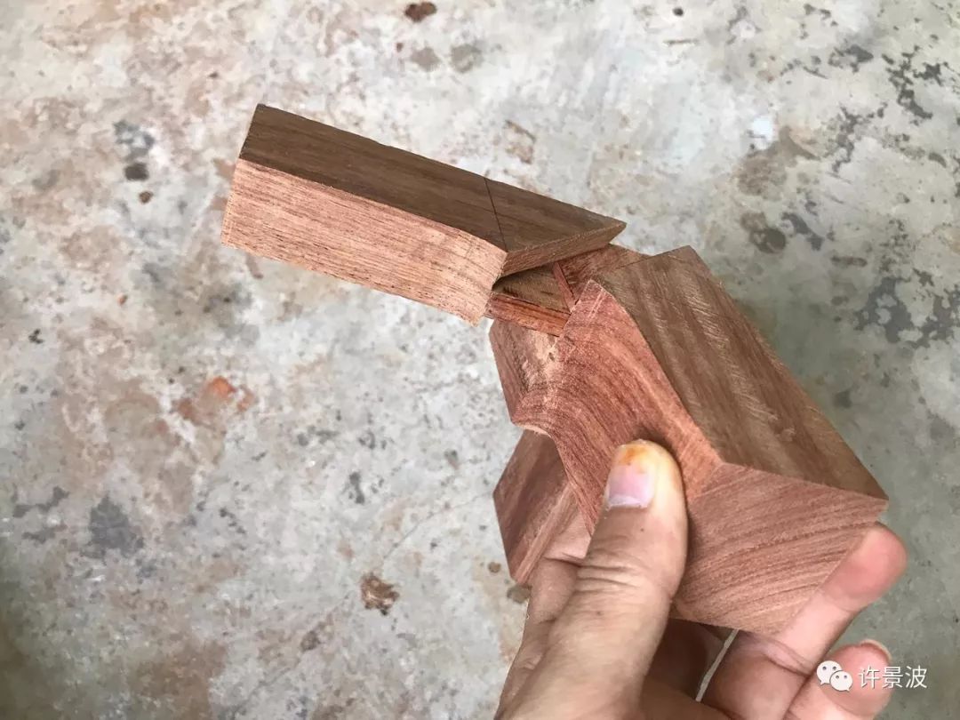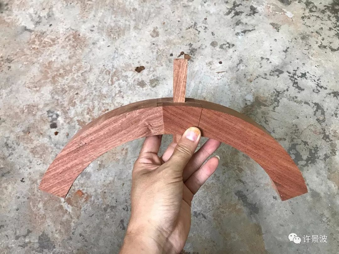这种结构是明式圈椅接头的经典成型结构,制作考究、牢固、美观。
