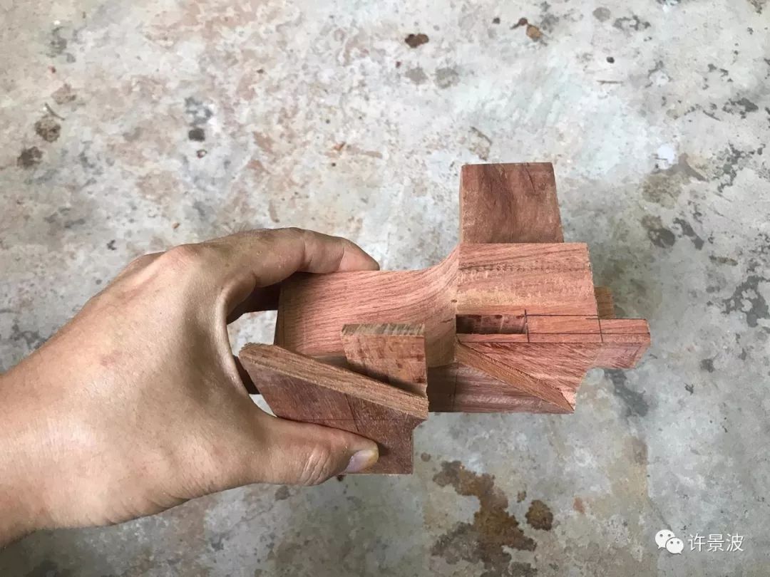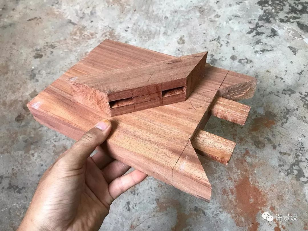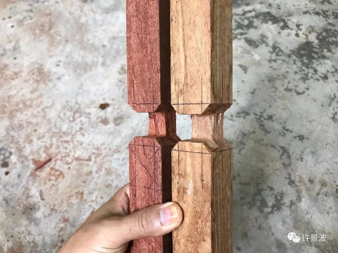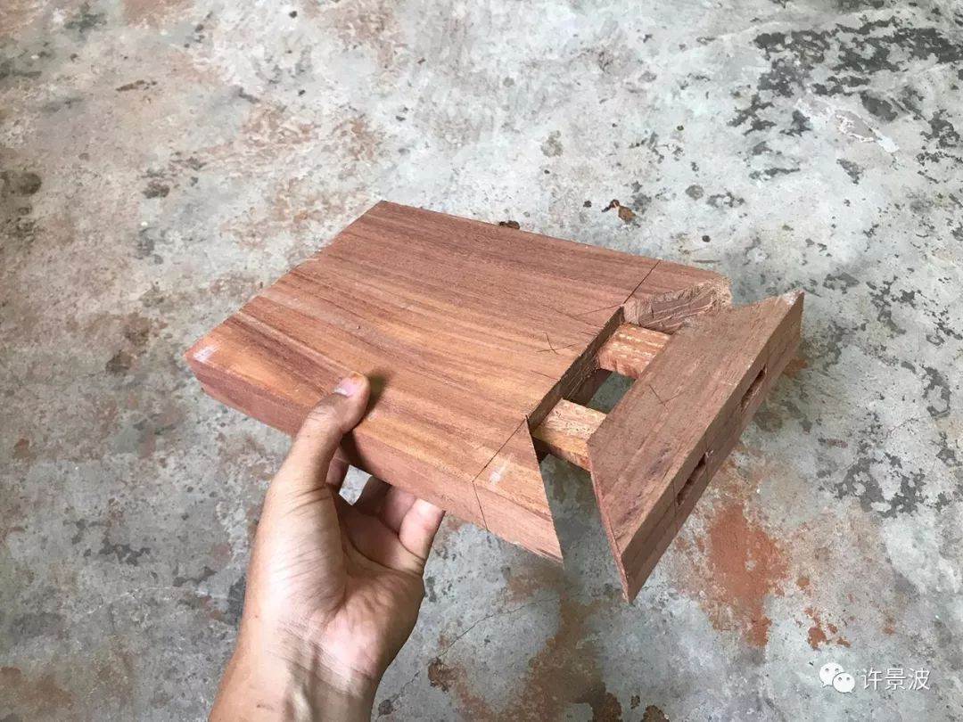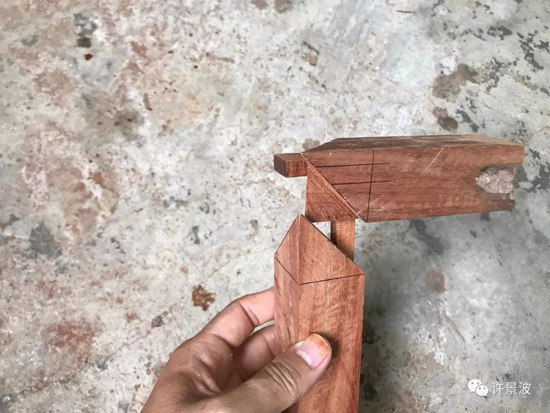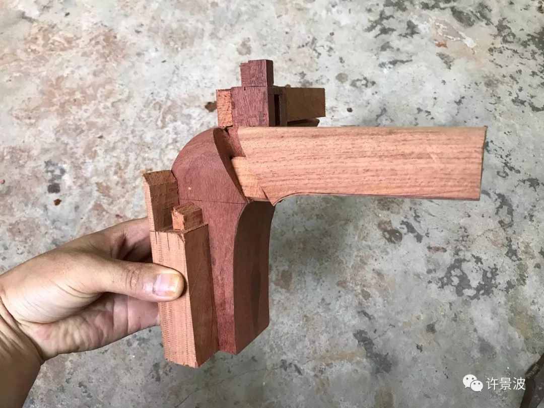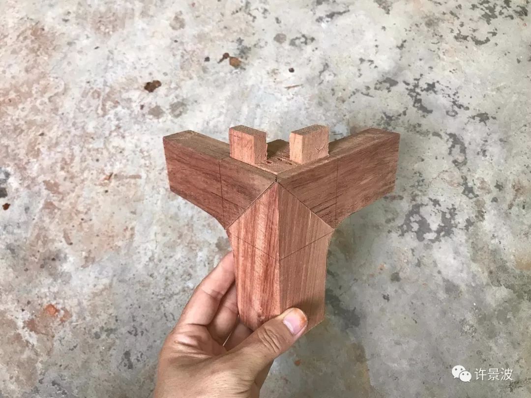 这种结构是明式圈椅接头的经典成型结构,制作考究、牢固、美观。
