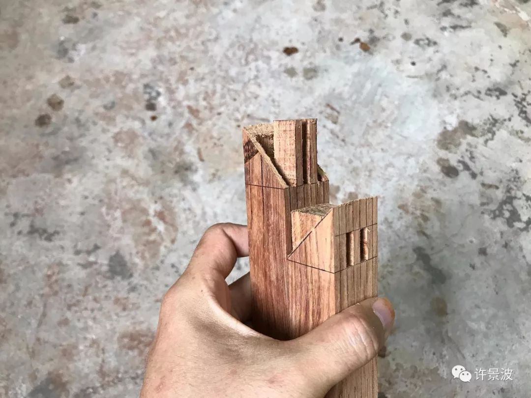 粽角榫因其外形仿佛粽子角而得名。三根料相交的一个结构,任何一个角度都看不到料横截面。