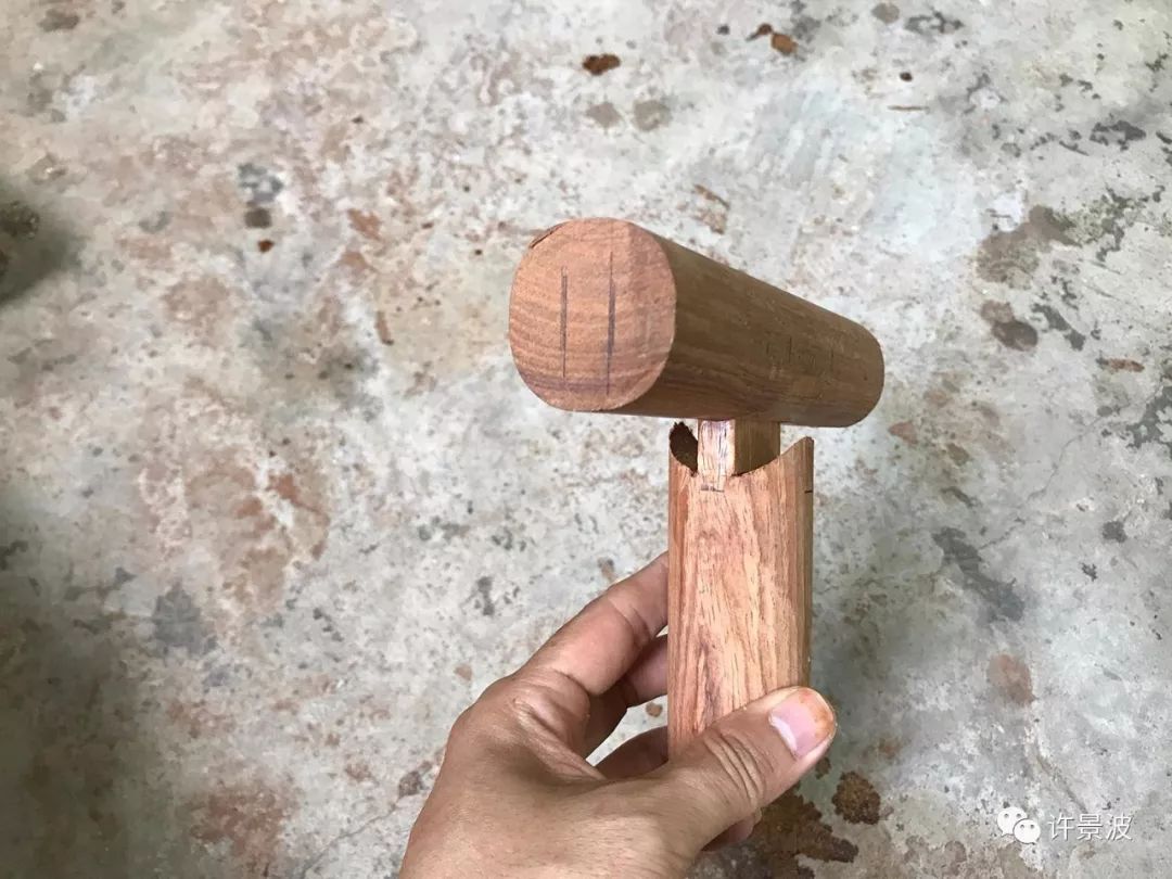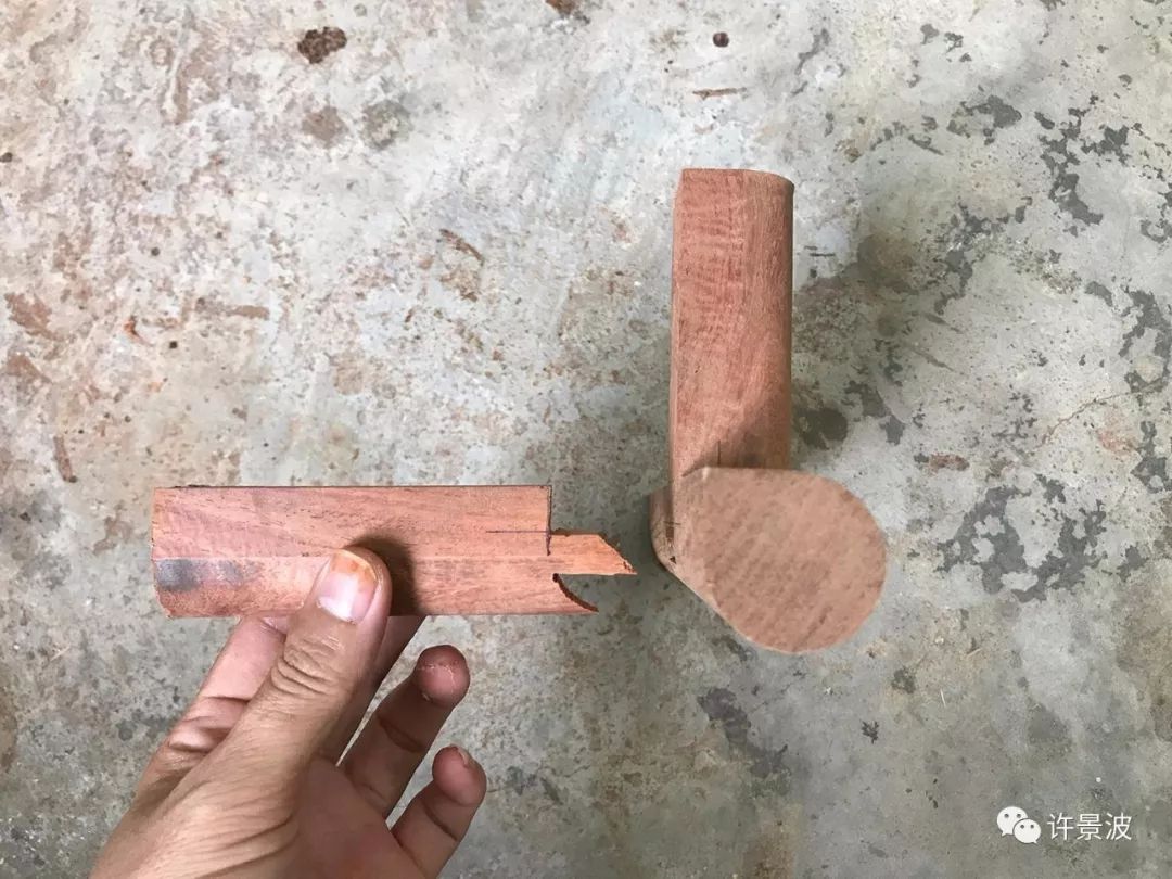 制作烟袋锅榫可以理解为正方形的方材直肩丁字接合,然后倒圆而成。