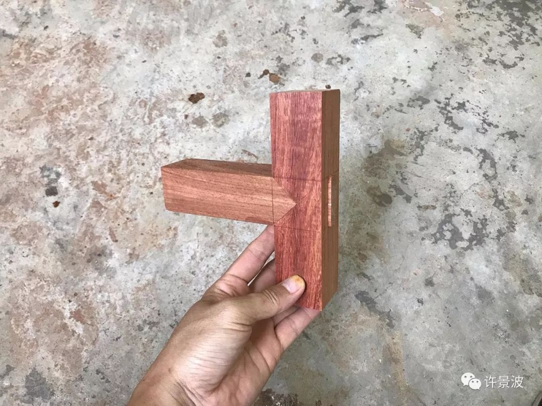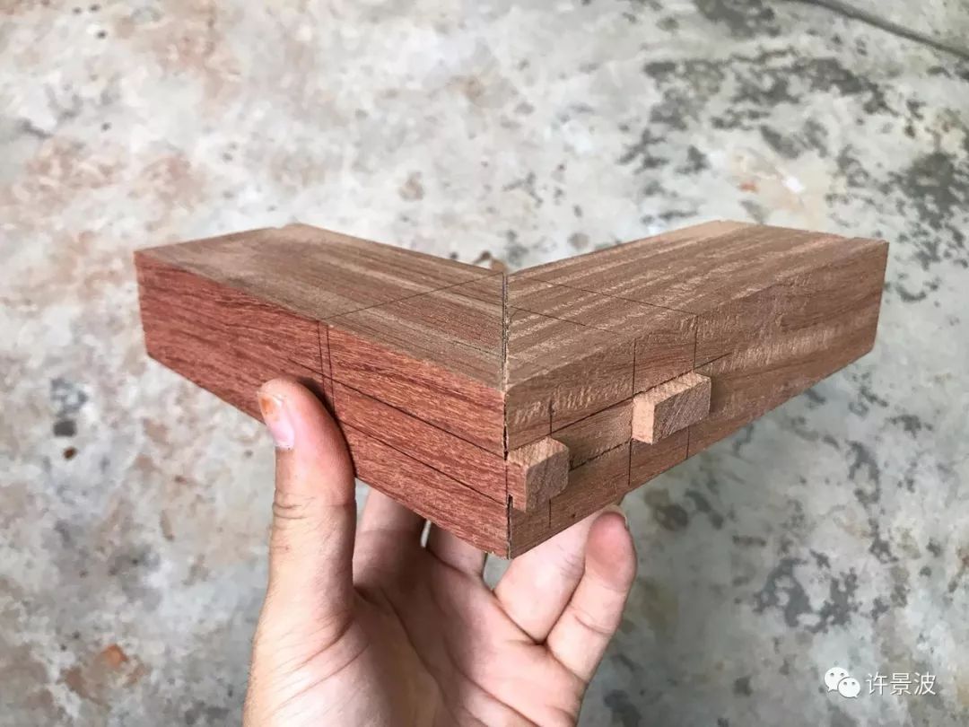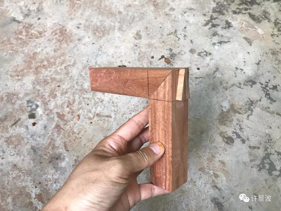 这种方法是平板角接合的最讲究方法,从外表看不到榫头,但不如明燕尾榫牢固。
