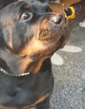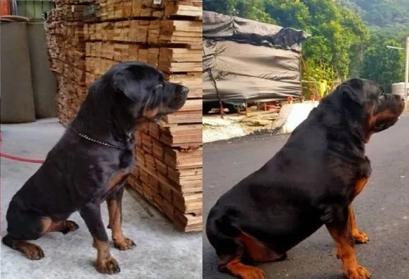 下面的狗狗叫慢慢,是一只罗威纳犬。