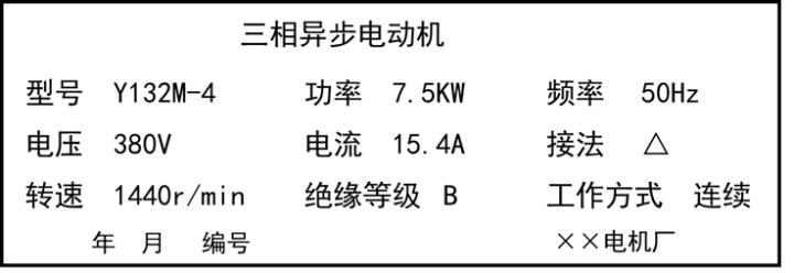 要正确使用电动机,必须要看懂铭牌。今以Y132M-4型电动机为例,来说明铭牌上各个数据的意义。