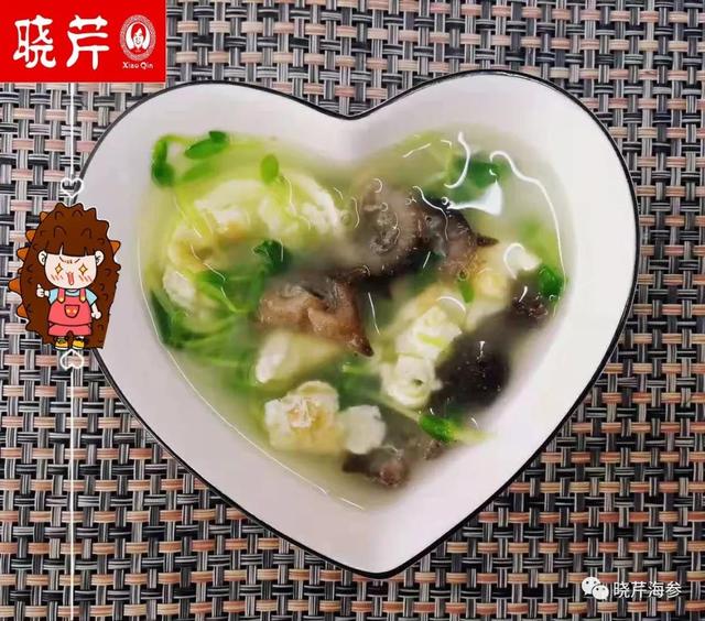 晓芹水发海参,鸡蛋,豌豆苗,