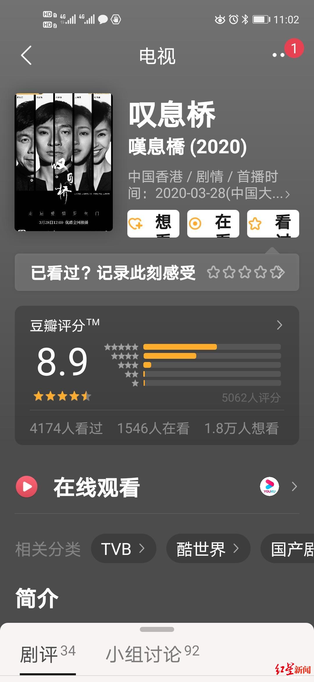 3月28日,老牌港星林保怡监制、主演的悬疑爱情港剧《叹息桥》独家上线优酷。在林保怡看来,这部讨论爱情中各种人性的电视剧需要观众“动脑筋看”,甚至需要多看几遍。即便这样,这部原汁原味的港剧在豆瓣开分即达到了8.9的高分,53.6%的人给出了5星评价,成为到目前为止,今年最高分的港剧。